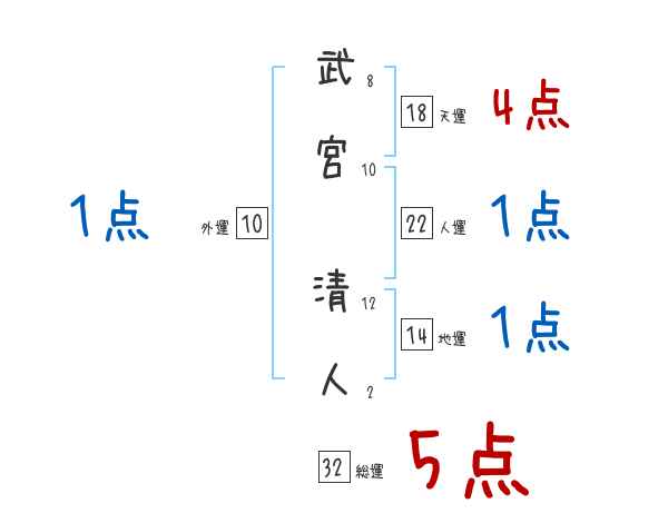 武宮清人さんの画数の鑑定結果