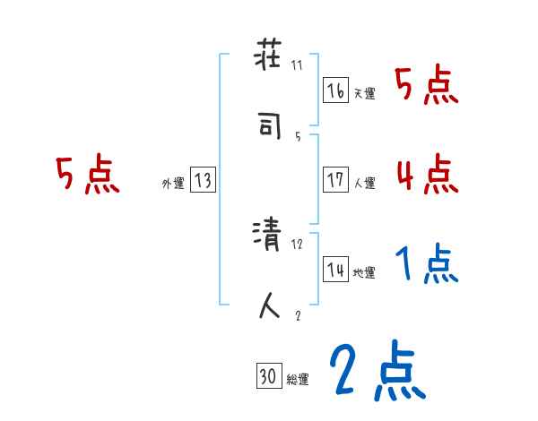 荘司清人さんの画数の鑑定結果