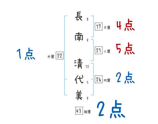 長南清代美さんの画数の鑑定結果