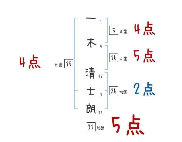 一木清士朗さんの画数の鑑定結果