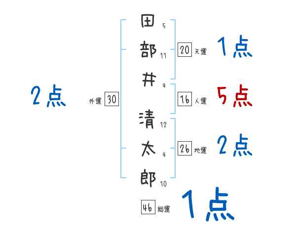 田部井清太郎さんの画数の鑑定結果