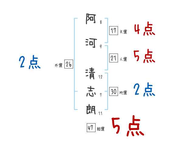 総運![]() | 阿河清志朗さんの総運は47画の5つ星!実力が開花し発展する円満な人生。財に恵まれる。 あなたの人生を表す1番重要な運勢です。生涯を通じて影響する総合運となり、主に50歳以降の晩年期に影響を及ぼします。 |