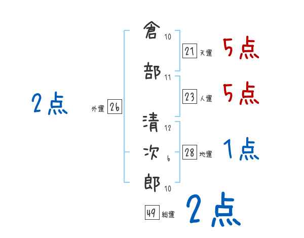 倉部清次郎さんの画数の鑑定結果