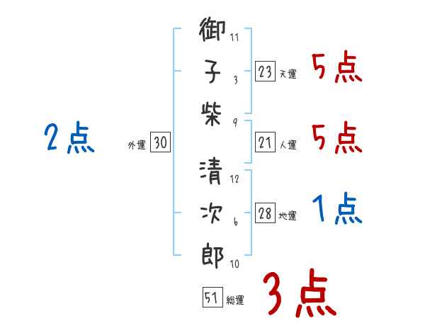 御子柴清次郎さんの画数の鑑定結果