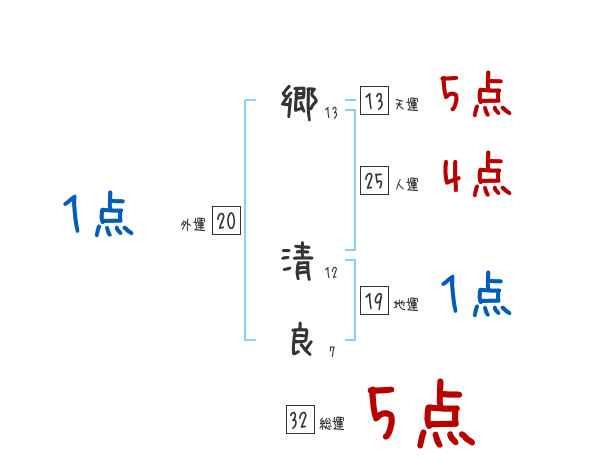 郷清良さんの画数の鑑定結果
