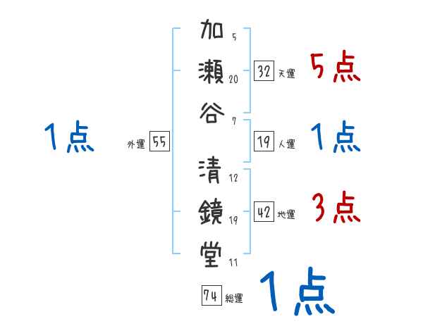 加瀬谷清鏡堂さんの画数の鑑定結果