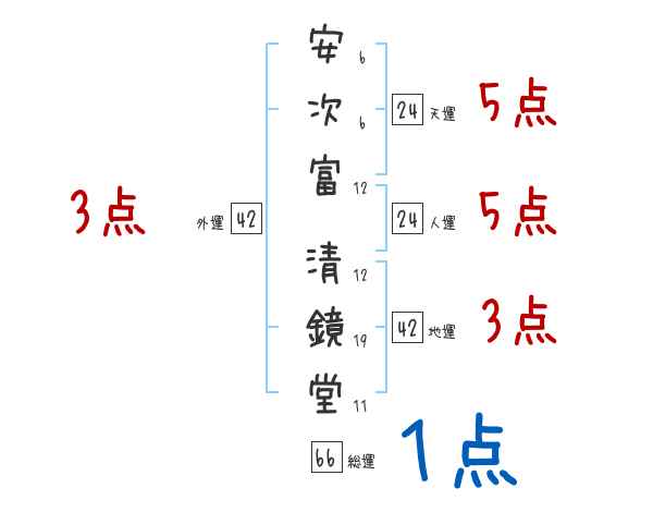 家系が持つ宿命的な運勢を表します。祖先から受け継いだ苗字ですので自分の力が及びません。家柄を象徴します。