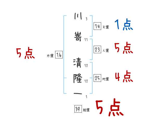 川嵜清隆一さんの外運は16画の5つ星