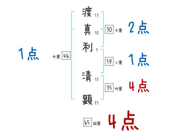 人運![]() | 渡真利清顕さんの人運は19画の1つ星!優れた才能を持ちますが、協調性が足りないことも。周りの人と協力する事を意識しましょう。 性格や才能などを表す2番目に重要な運勢です。人間関係や協調性、社会的な成功に影響します。主に20歳から50歳ぐらいまでの中年期の運勢を表します。 |