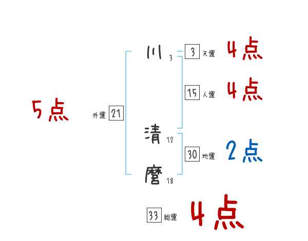 川清麿さんの画数の鑑定結果