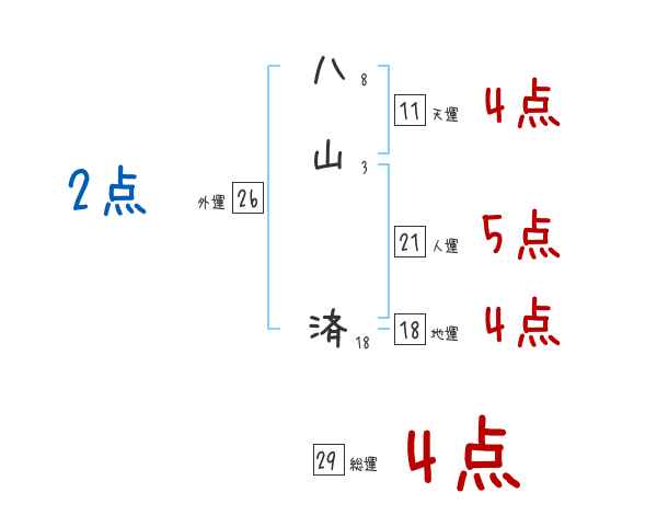 八山済さんの画数の鑑定結果