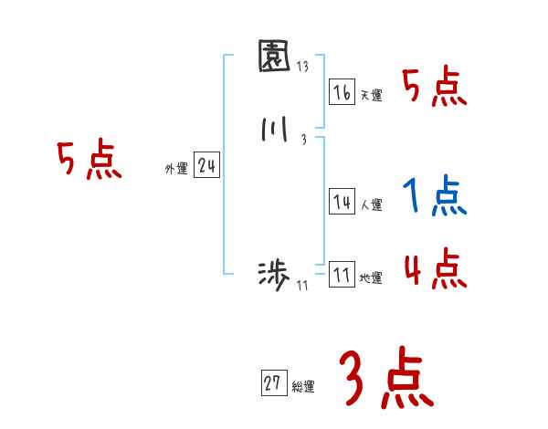 園川渉さんの画数の鑑定結果