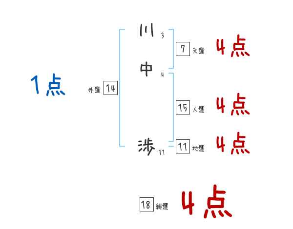 天運![]() | 川中渉さんの天運は7画の4つ星!強い意志や信念を持ち独立心が強い。自立する。 家系が持つ宿命的な運勢を表します。祖先から受け継いだ苗字ですので自分の力が及びません。家柄を象徴します。 |