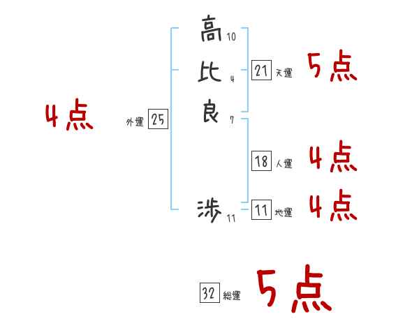 高比良渉さんの画数の鑑定結果