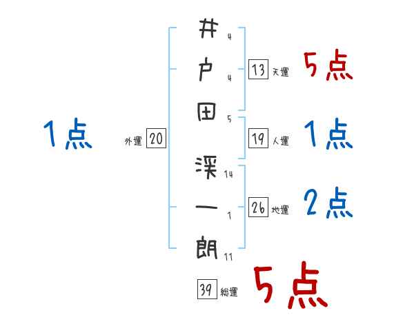 総運![]() | 井戸田渓一朗さんの総運は39画の5つ星!社交性に優れ人望が厚い。人の上に立ち成功する。 あなたの人生を表す1番重要な運勢です。生涯を通じて影響する総合運となり、主に50歳以降の晩年期に影響を及ぼします。 |
