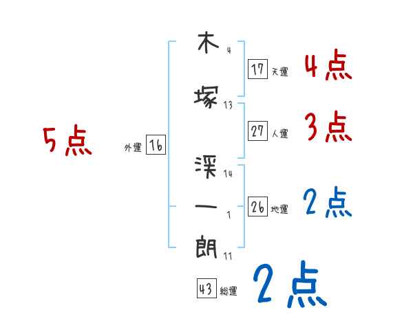 家系が持つ宿命的な運勢を表します。祖先から受け継いだ苗字ですので自分の力が及びません。家柄を象徴します。