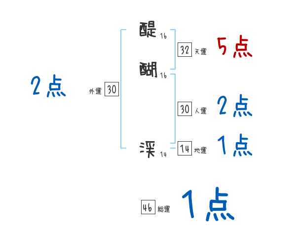 醍醐渓さんの画数の鑑定結果