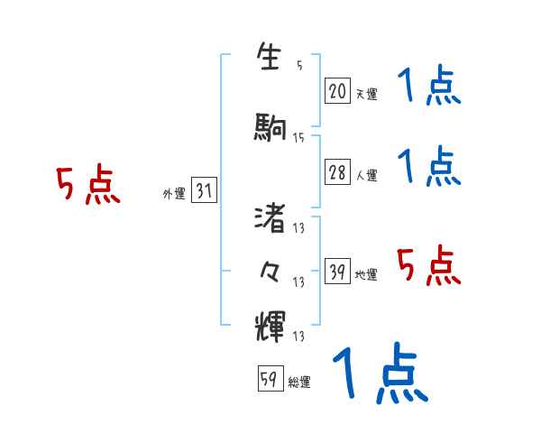 生駒渚々輝さんの画数の鑑定結果