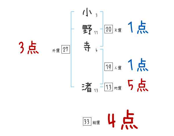 小野寺渚さんの画数の鑑定結果