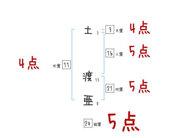 土渡亜さんの画数の鑑定結果