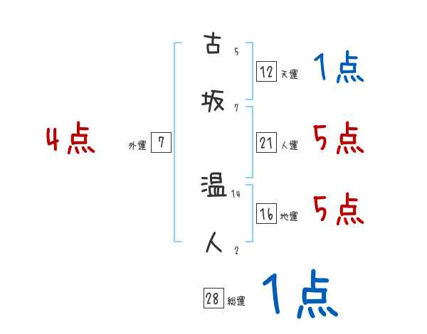 古坂温人さんの画数の鑑定結果