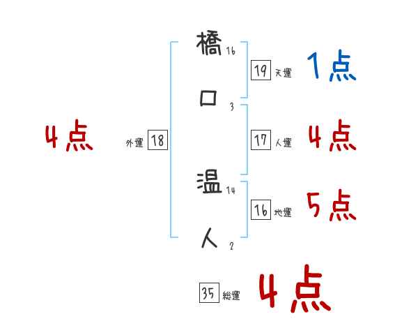 橋口温人さんの画数の鑑定結果