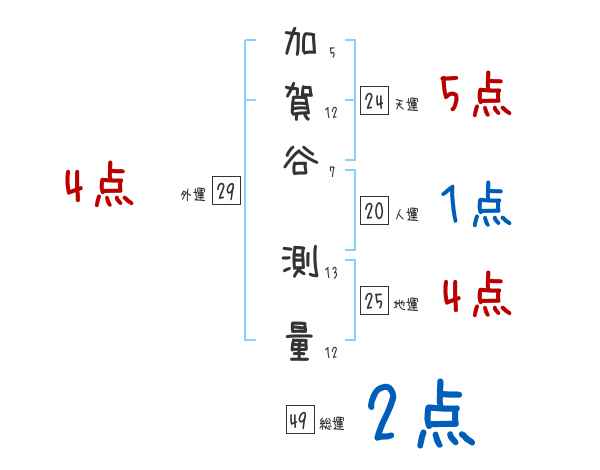 家系が持つ宿命的な運勢を表します。祖先から受け継いだ苗字ですので自分の力が及びません。家柄を象徴します。