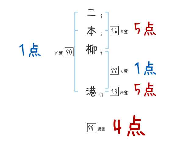 二本柳港さんの画数の鑑定結果