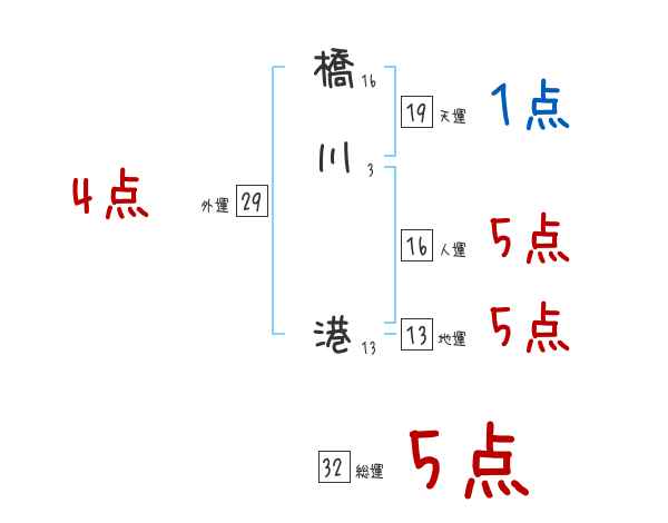 橋川港さんの画数の鑑定結果