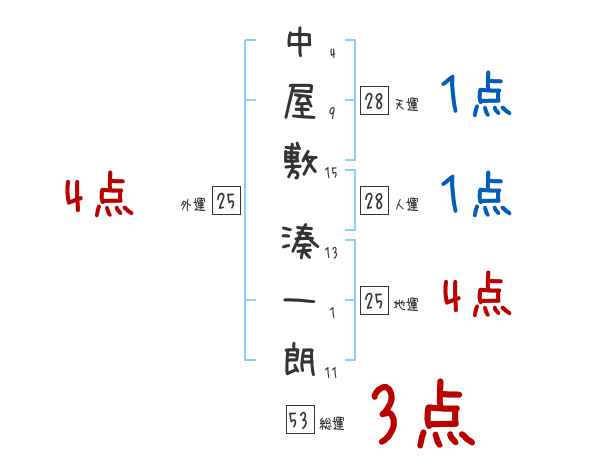 中屋敷湊一朗さんの画数の鑑定結果