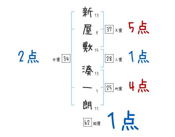 新屋敷湊一朗さんの画数の鑑定結果