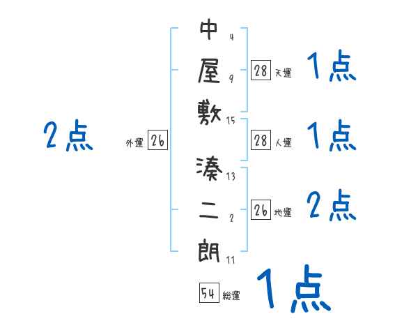 中屋敷湊二朗さんの画数の鑑定結果