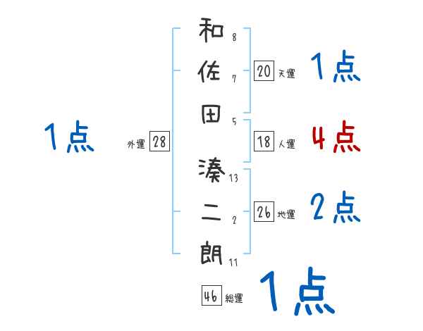 外運![]() | 和佐田湊二朗さんの外運は28画の1つ星!家庭環境に注意。スポーツで活躍できる能力があるかも。 生活面を象徴する運勢です。外部から受ける影響力を表し、結婚運、家庭運や職場、環境への順応性を表します。 |