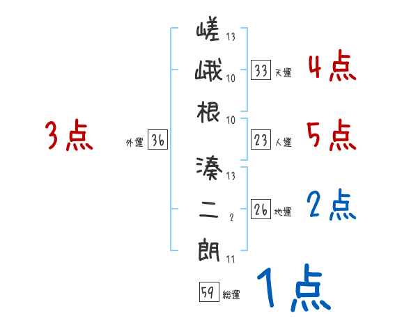 嵯峨根湊二朗さんの総運は59画の1つ星