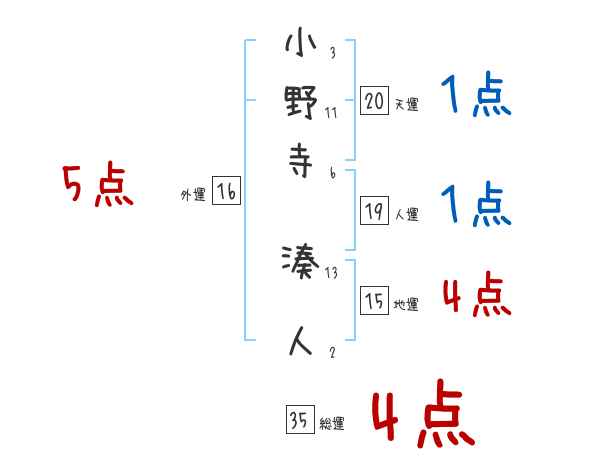 小野寺湊人さんの画数の鑑定結果