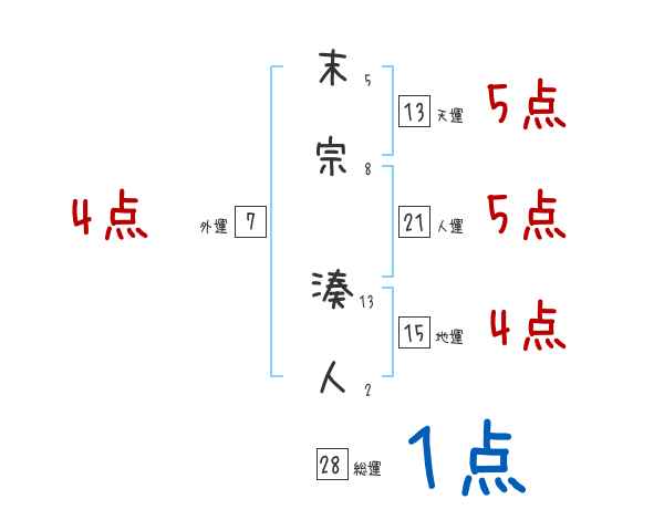 末宗湊人さんの画数の鑑定結果