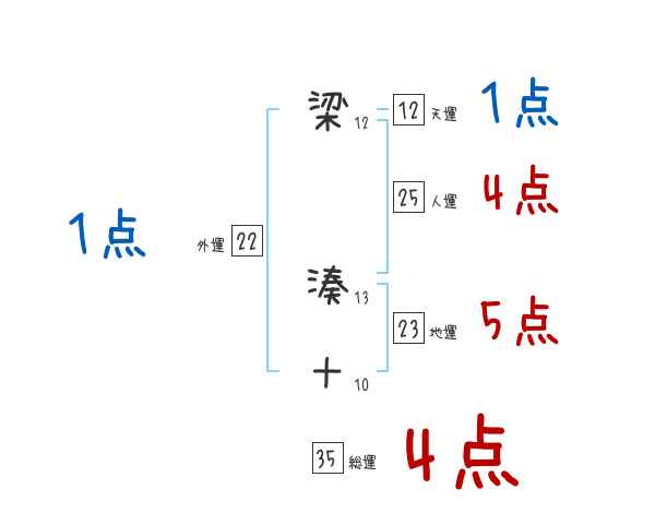 梁湊十さんの画数の鑑定結果