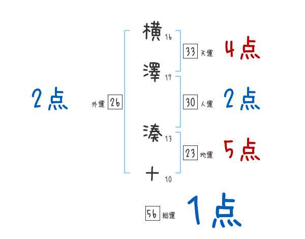 天運![]() | 横澤湊十さんの天運は33画の4つ星!権力志向でプライドが高い。勇気があり運を切り開き成功する。 家系が持つ宿命的な運勢を表します。祖先から受け継いだ苗字ですので自分の力が及びません。家柄を象徴します。 |