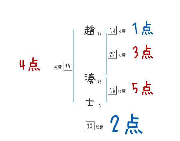 天運![]() | 趙湊士さんの天運は14画の1つ星!人に対して優しいがストレスを溜め込みがち。人間関係のトラブルを避けるよう気をつけましょう。 家系が持つ宿命的な運勢を表します。祖先から受け継いだ苗字ですので自分の力が及びません。家柄を象徴します。 |