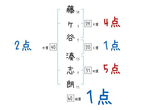 藤ヶ谷湊志朗さんの総運は60画の1つ星
