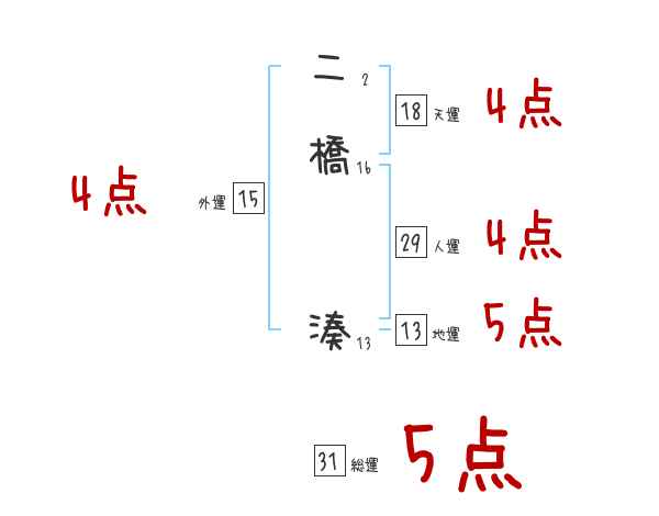 二橋湊さんの画数の鑑定結果