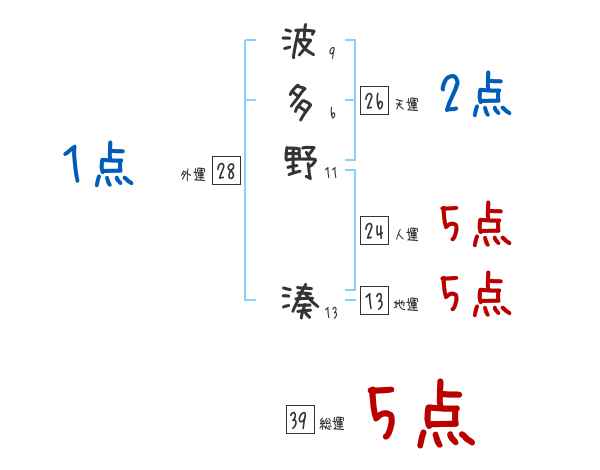 波多野湊さんの画数の鑑定結果