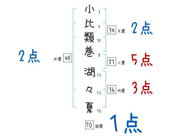 小比類巻湖々夏さんの画数の鑑定結果
