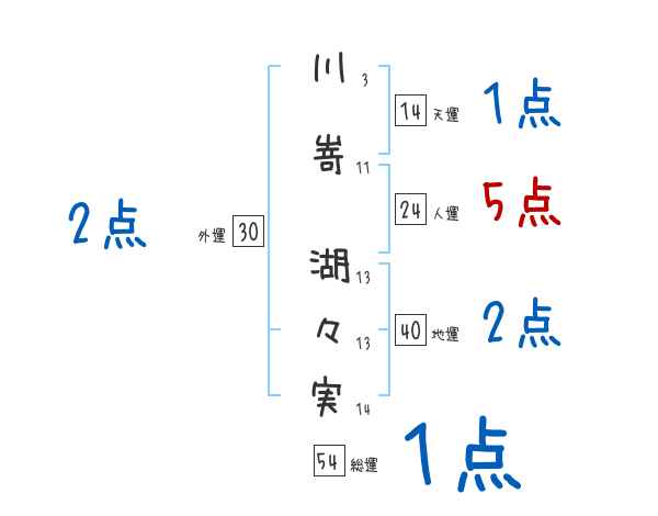 川嵜湖々実さんの画数の鑑定結果