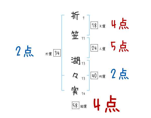総運![]() | 折笠湖々実さんの総運は58画の4つ星!安定した生活。大器晩成タイプ。 あなたの人生を表す1番重要な運勢です。生涯を通じて影響する総合運となり、主に50歳以降の晩年期に影響を及ぼします。 |