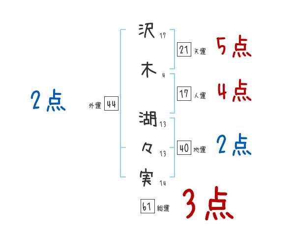 天運![]() | 沢木湖々実さんの天運は21画の5つ星!統率力がある。独立し成功する。名誉を手に入れる。 家系が持つ宿命的な運勢を表します。祖先から受け継いだ苗字ですので自分の力が及びません。家柄を象徴します。 |
