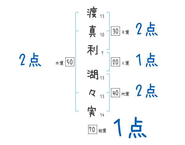 渡真利湖々実さんの画数の鑑定結果