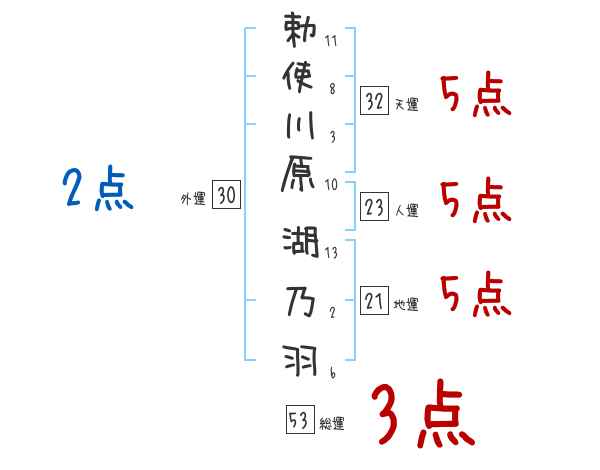 天運![]() | 勅使川原湖乃羽さんの天運は32画の5つ星!柔軟性があり成功する。チャンスが多く金運が良い。 家系が持つ宿命的な運勢を表します。祖先から受け継いだ苗字ですので自分の力が及びません。家柄を象徴します。 |