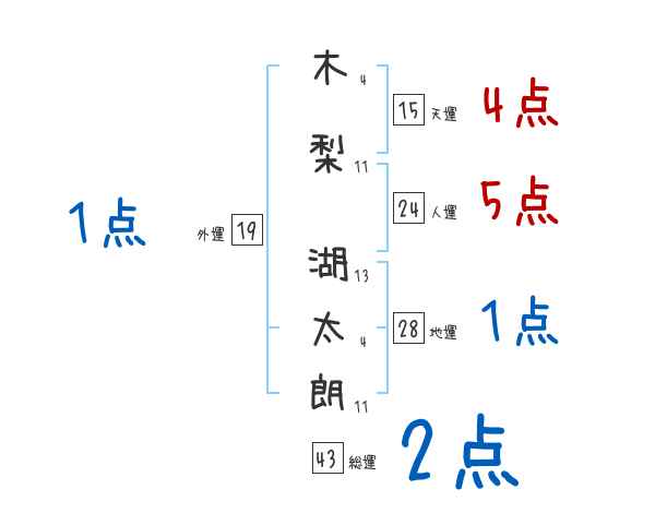 総運![]() | 木梨湖太朗さんの総運は43画の2つ星!頑固な性格で独立心が強いかも。やや非現実的で浪費に注意しましょう。 あなたの人生を表す1番重要な運勢です。生涯を通じて影響する総合運となり、主に50歳以降の晩年期に影響を及ぼします。 |
