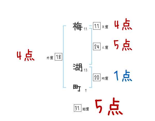 梅湖町さんの画数の鑑定結果